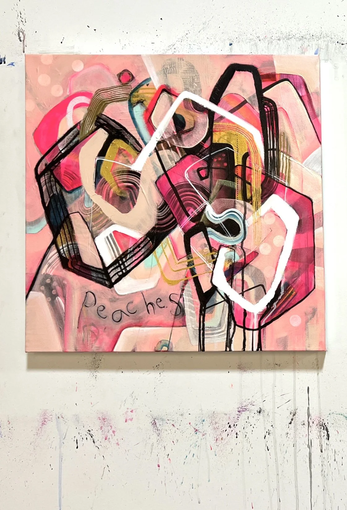A work in progress - “Peaches” 20 x 20 acrylic on canvas - 2024